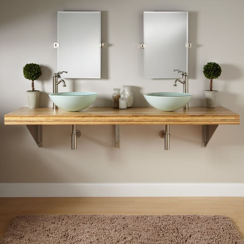- Габариты изделия. Они, как правило, являются стандартизированными. Иногда возможно небольшое несовпадение. В таких случаях торец длинной столешницы обрезают либо делают в стене пропил. Что касается ширины, выбирать ее рекомендуется по габаритам ванной. Если помещение маленькое, подойдет модель 40 см. Для просторных комнат используются изделия до 100 см.