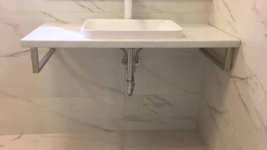 Но такие столешницы невозможно самим подогнать под выбранные размеры и формы раковины. За ними требуется основательной и постоянный уход. При больших нагрузках наблюдаются случаи сколов и глубоких повреждений, в результате чего возникает необходимость однозначной замены испорченной на новую.