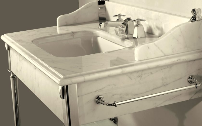 В выборе сантехники имеются разные модели со столешницами. Изготавливают такую сантехнику из гранита, мрамора, оникса.