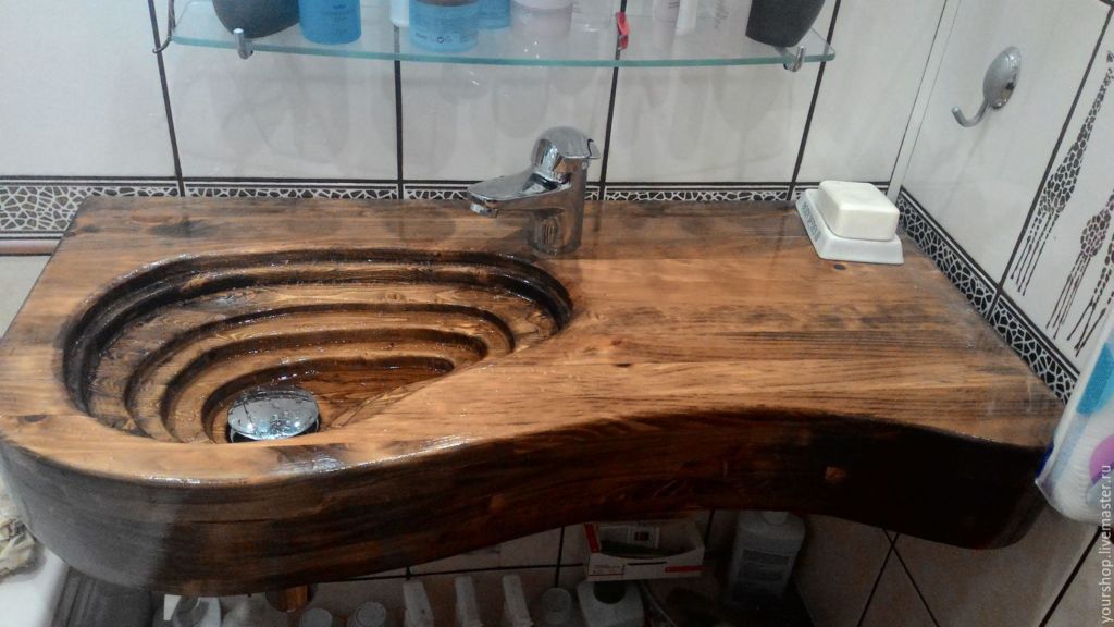 Любители оригинальных решений могут приобрести стеклянные, деревянные либо металлические умывальники. Последние нередко предлагаются в довольно изысканных формах. Если у человека появилось желание использовать необычный деревянный накладной умывальник, необходимо тщательно проверить качество изделия. Дерево обязательно обрабатывается специальным раствором.