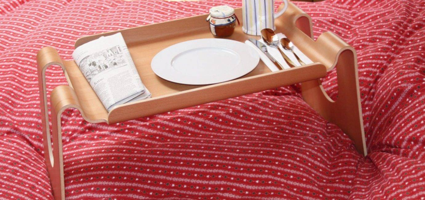 Столик для завтрака в постель может выполнять не только свое прямое предназначение, являясь подносом для блюд, но и служить дополнительным целям.