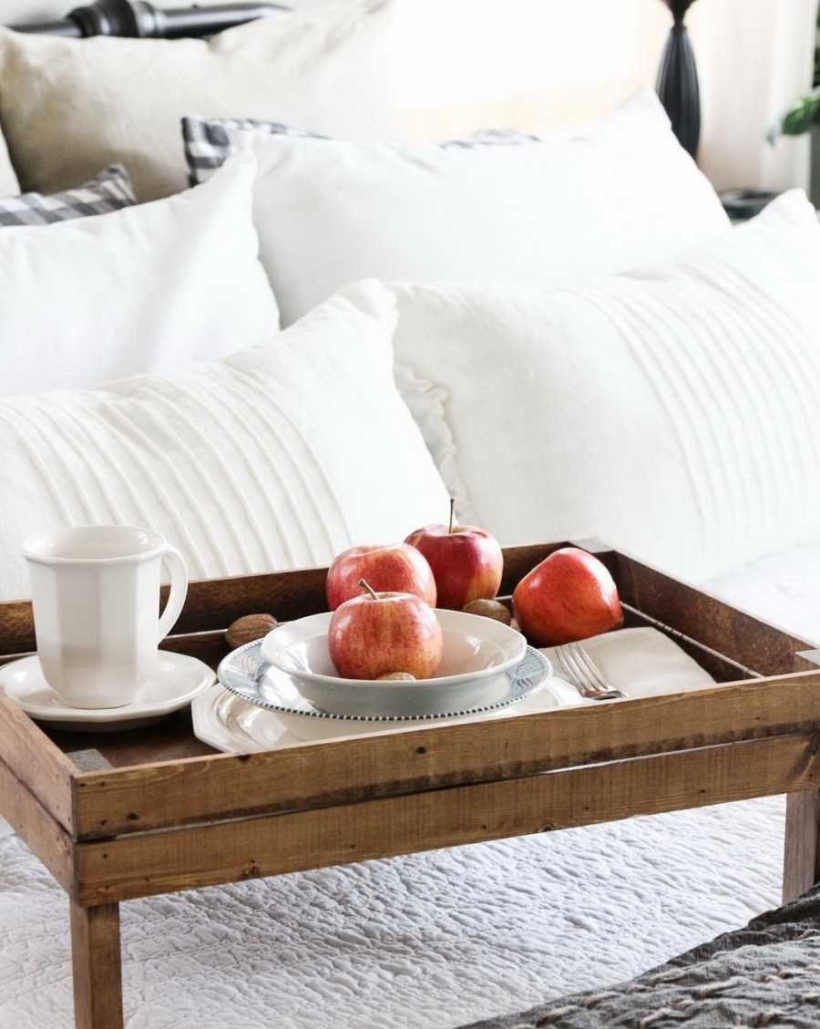 Те, кто умеет пользоваться столярными инструментами, без труда смастерят столик для подачи завтраков в постель.