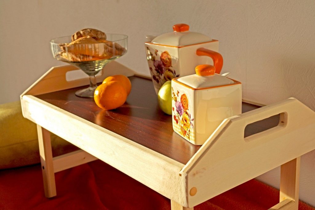 Не менее важна и устойчивость конструкции. Не очень приятно, если столик опрокинется от случайного толчка, и кофе или сок выльется на постель