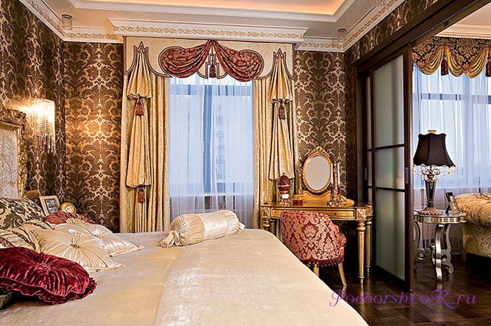 Большое количество драпировки и подхватов – это основные характеристики дизайна. Именно они отличают его от десятков других.