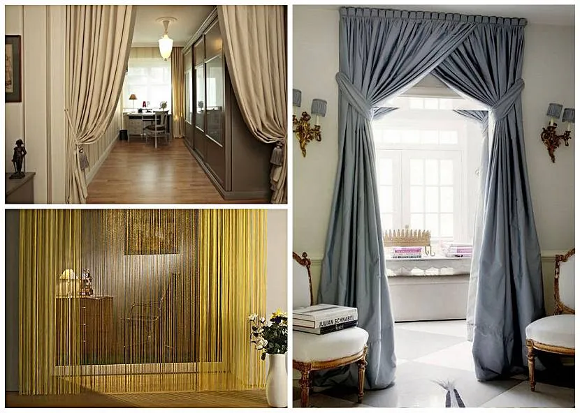 Проходы, связанные с коридором, чаще всего вместо дверей прикрывают декоративными шторами. Такие изделия помогают полностью менять внешний вид помещения, придавая ему оригинальности и стильности. Шторы делают прихожую максимально комфортной и уютной.