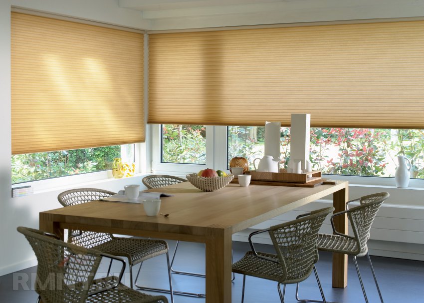 Гофрированные шторы отличаются конструктивным исполнением. Они состоят из двух скрепленных по линии сгиба гармошек. Это обеспечивает дополнительный теплоизолирующий эффект оконного проема за счет воздушной прослойки, защищает комнату от перегрева летом и от потерь тепла в холодное время года. Из-за сложности изготовления стоимость таких штор выше в сравнении с плиссированными.