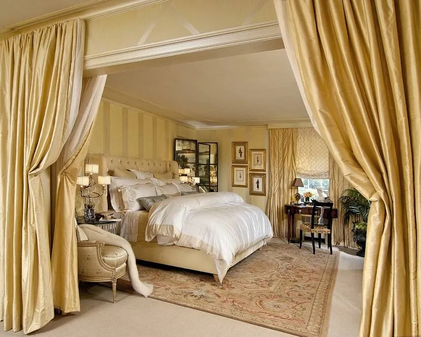 - Жаккард и атлас делают помещение изысканным, с какой стороны на него ни посмотри! Но применение занавесок из этих тканей должно быть стилистически обосновано, причём в обеих комнатах, находящихся по обе стороны занавесок.