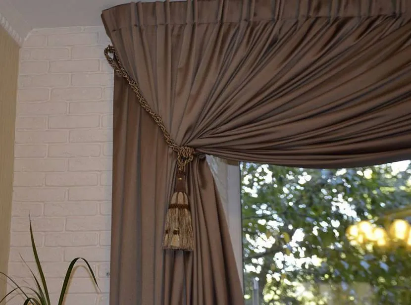 Чтобы закрепить их, достаточно пришить завязки к шторам или продеть в специальные дырочки, после чего привязать к карнизу. Можно сделать простые узлы, а можно бантики, которые придадут им оригинальности. Отлично подойдут для легких и средних по тяжести тканей.