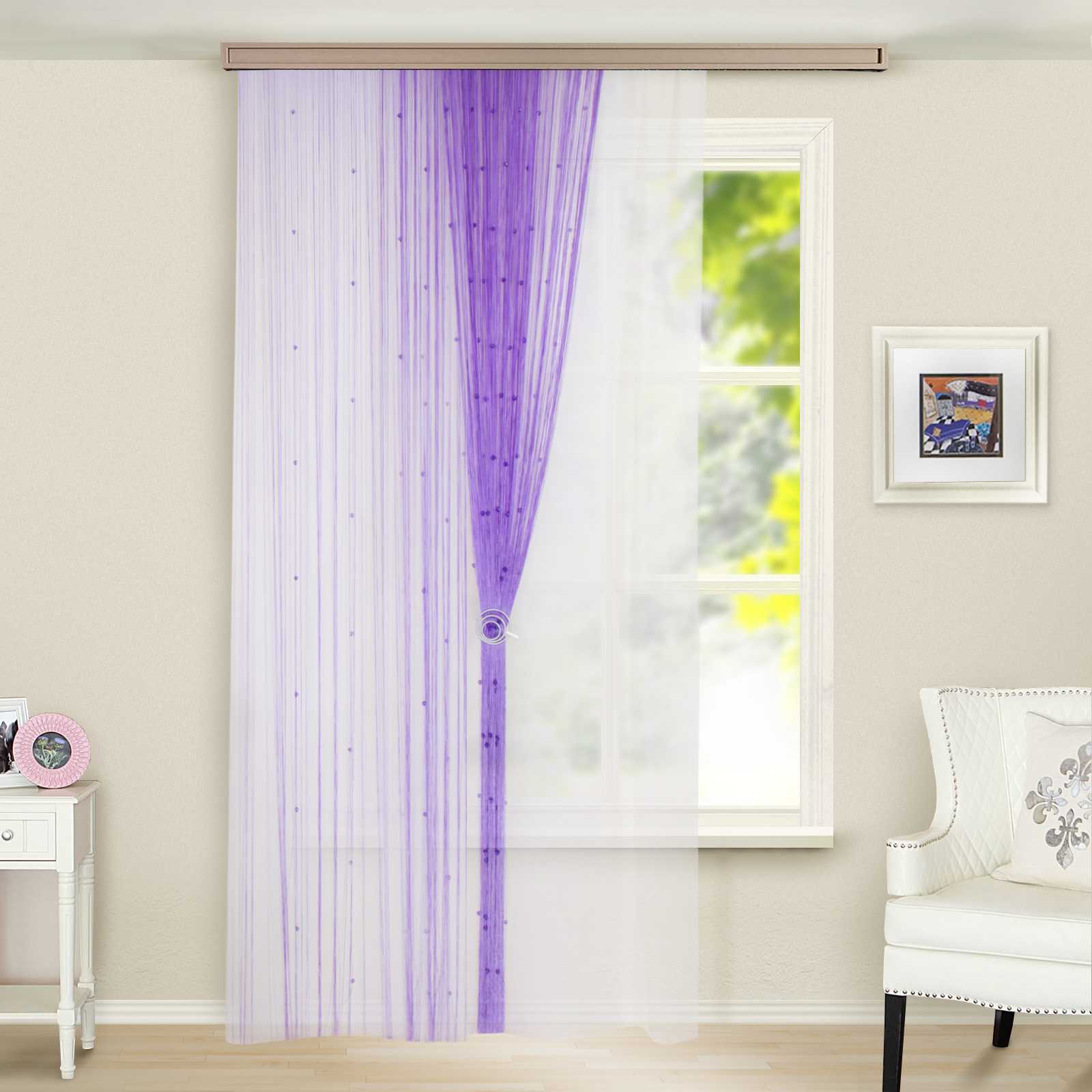 Как красиво повесить нитяные шторы