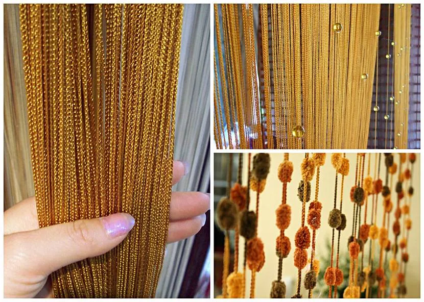 - Занавеси из нитей, бусинок, бамбуковых секций. Выполняют декоративную функцию. Дизайнеры часто рассматривают их как элемент зонирования комнат.