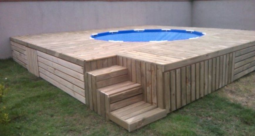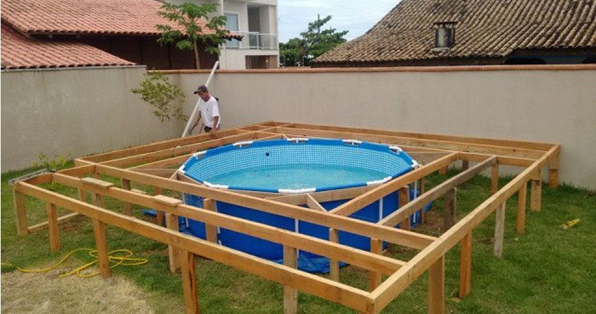 Как обустроить зону отдыха с лестницей вокруг каркасного бассейна