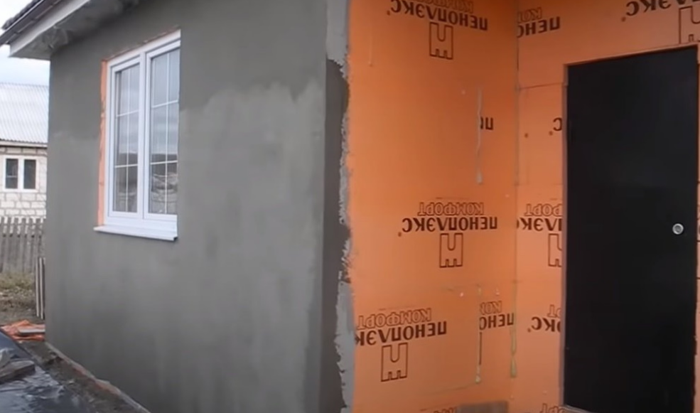 - Гидроизоляция. Такой материал как пеноплекс впитывает влагу. Немного, около 2% при полном погружении. Но этого все равно достаточно для того, чтобы он утратил прочность. Мокрый пеноплекс плохо сохнет и практически перестает сохранять влагу. Штукатурка позволяет избежать этого.
