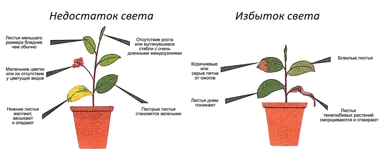 Также нужно учитывать, что с уменьшением расстояния установки снижается полезная площадь освещения. Иногда поиск компромисса занимает довольно много времени, а факт неправильного подвеса обнаруживается по внешним признакам растений.