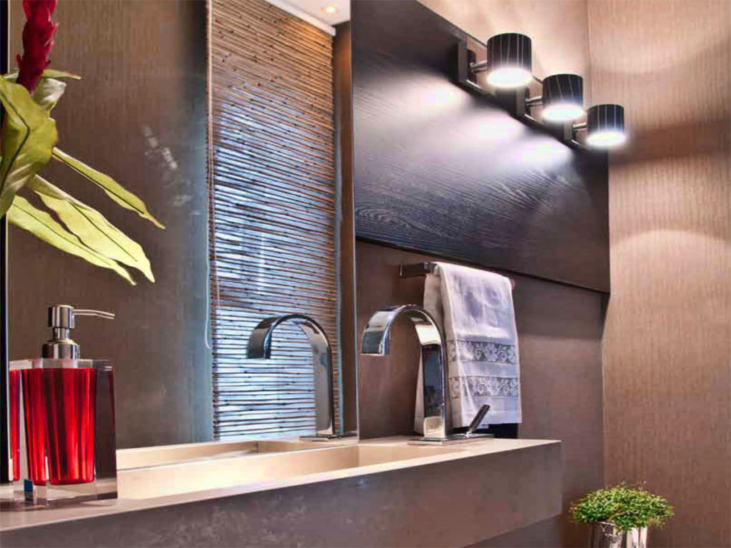 Комбинация потолочных и настенных светильников для ванной комнаты уж точно позволит получить ту интенсивность света, которую вы пожелаете. К тому же появляется возможность изменять степень освещённости по желанию — включая и выключая часть осветительных приборов.