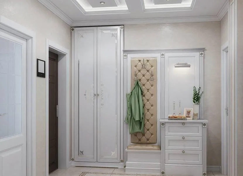 При этом в некоторых случаях придётся полностью отказаться от привычных вещей (стандартного шкафа, банкетки, обувницы). Встроенные модели с выдвижными отсеками окажутся наиболее выигрышным решением.