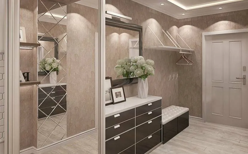 - Правило №4: В прихожей должно присутствовать как минимум одно зеркало – оно поможет придать комнате нужный объем и подчеркнет требуемые детали.