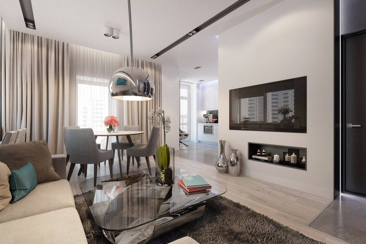 С помощью большого шкафа-купе можно отделить прихожую от гостиной комнаты. Помещения оформлены в одном стиле, но благодаря шкафу, появилось разделение на функциональные зоны.