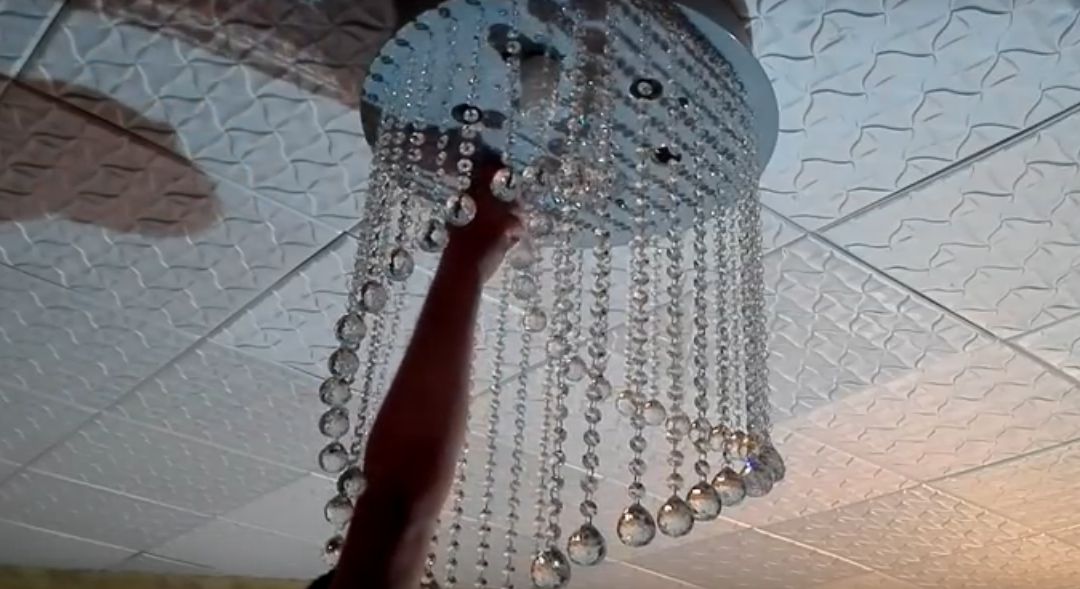 Эти работы требуют аккуратного подхода, поскольку существует риск повреждения стеклянных украшений. После закрепления всех компонентов на собственных местах понадобится чистой тряпочкой протереть основание от пыли и отпечатков, появившихся в процессе сборки. На этом установка LED-люстры завершена.