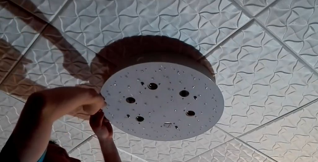 При наличии деревянного потолка все довольно легко. Понадобится прикрепить крестовину к потолочной поверхности с помощью саморезов. Если вы располагаете гипсокартонным потолком, желательно изначально предусмотреть установку светодиодной люстры и в точках крепления подготовить металлический профиль. В этом случае такая крестовина может быть прикручена с помощью саморезов по металлу непосредственно к профилю через гипсокартон.