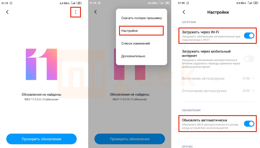 Отключаем обновление компонентов системы Miui. Открываем «Обновление компонентов», нажимаем шестеренку справа сверху, затем «Автоматическое обновление» – «Не обновлять».
