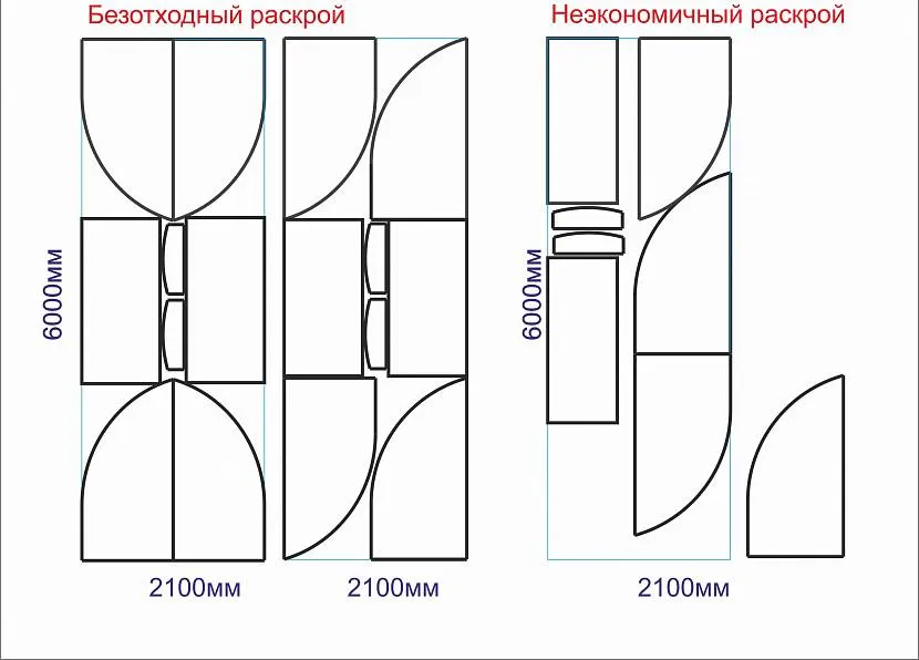 Сначала нужно поставить каркас, а затем произвести точные измерения и перенести их на полотно. Чтобы рационально использовать материал и получить как можно меньше ненужных обрезков, лучше всего изготовить шаблоны из картона и разместить их на листе. Или выполнить чертёж в масштабе.