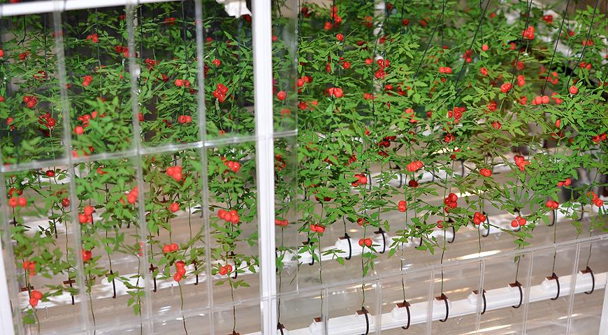 Макет работы профессиональной теплицы с выращиванием томатов на гидропонике.