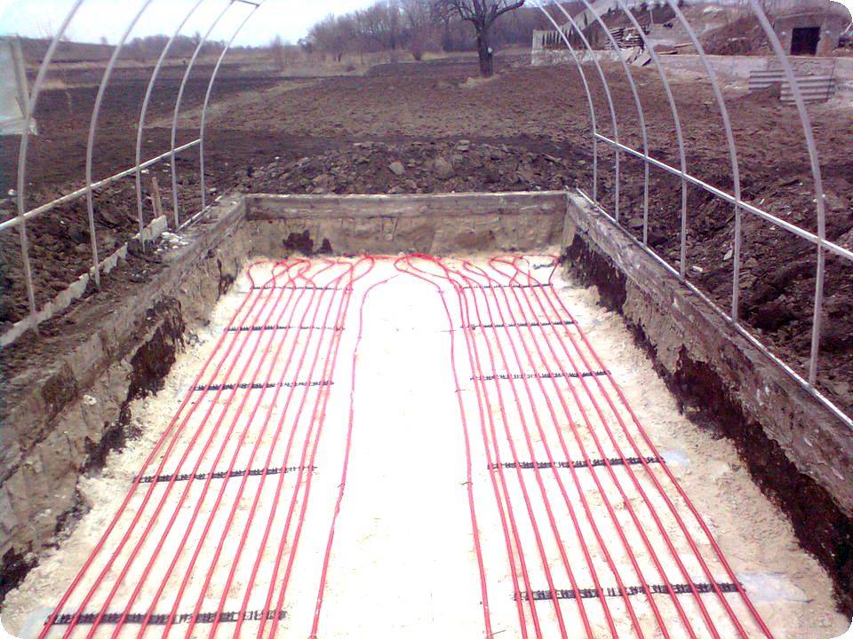 Водяные – здесь вместо кабелей используются трубы из ПВХ или иного полимера, также закладываемые под почву в теплице. По трубам проводится горячая вода, подогревающая грядки. По сути, это аналог тех отопительных батарей, что стоят в любом доме. Как и в случае с электрическими теплыми грядками, высокая эффективность работы требует немалых первоначальных вложений и последующих расходов на подогрев воды.
