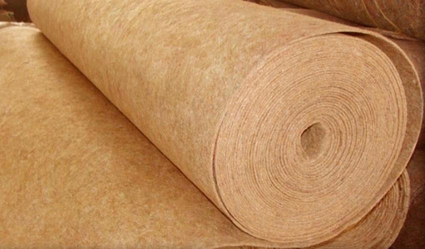 Джут. Материал хорошо поглощает избытки влаги, не подвергается гниению и плесневым наростам. Образует дополнительный шумо-теплоизоляционный и пожаробезопасный слой.