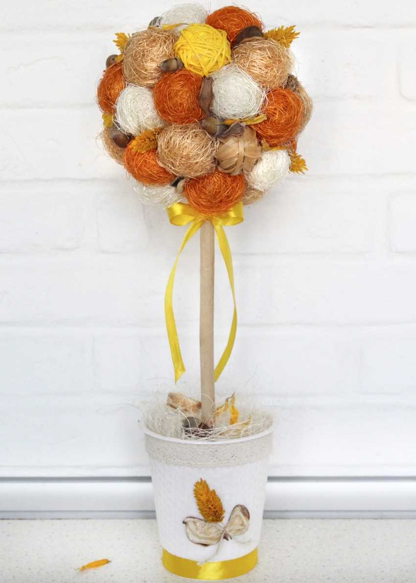 Теперь вы знаете, как пошагово сделать искусственное дерево своими руками. Признаюсь честно, каждый сделанный своими руками топиарий — нечто особенное, и вы поймете, каким он будет только тогда, когда начнете его украшать. Попробуйте делать праздничные деревья и обычные скромные деревца для интерьера — те, что выкладываются шишками и зернами кофе смогут не только украсить помещение, но и ароматизировать его (можно добавить пару капель эфирного масла).