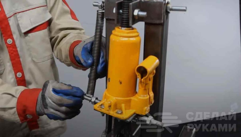 Затем их наваривают на металлические стержни и монтируют в раму. Домкраты тоже можно подбирать по своему усмотрению. Одни модели слабые, но легкие и мобильные. Другие имеют сравнительно крупные размеры. Все это надо учитывать.