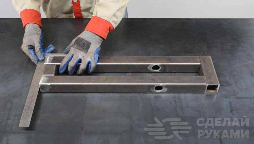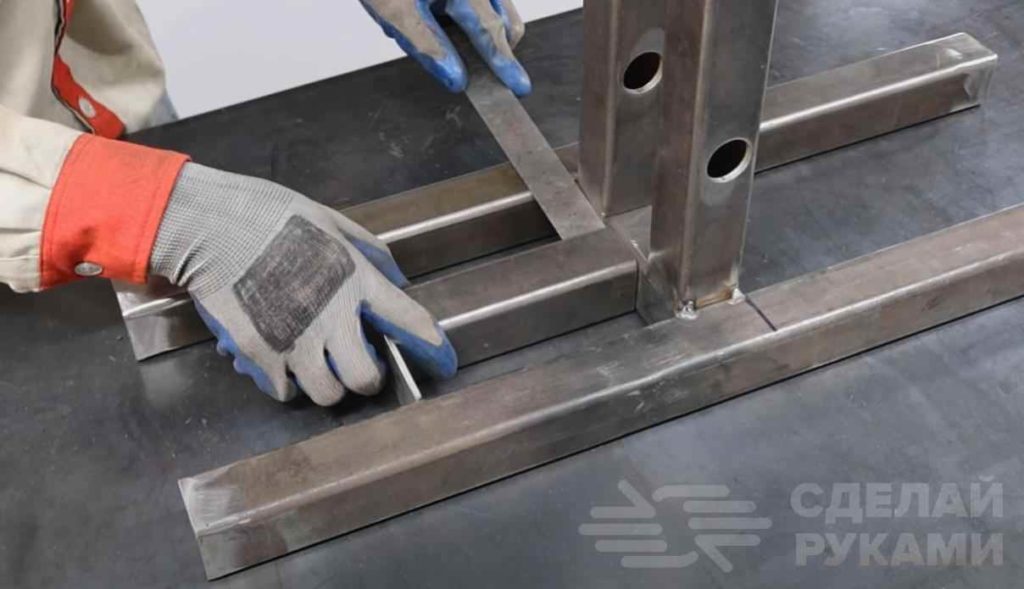К примеру, в некоторых самодельных моделях люди не используют полноценных металлических оснований из плит, а в место низ просто наваривают несколько дополнительных профильных труб в нижней части рамы.