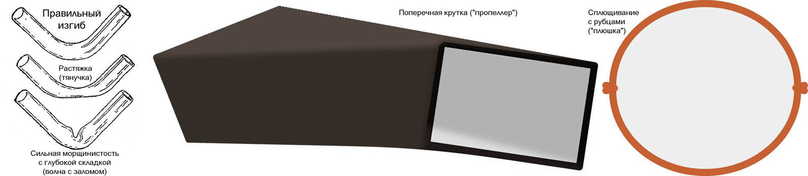 Типичные дефекты гнутья труб показаны слева на рис.: