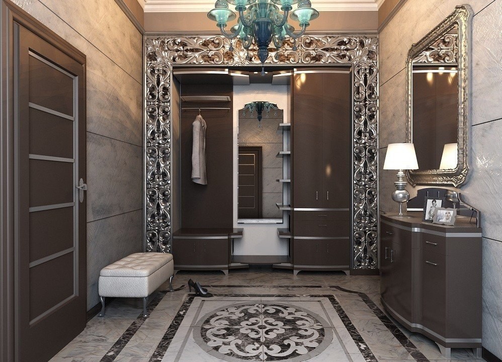 Стиль обрамления продиктован общем стилем интерьера и размером помещения. Так громоздкие рамы с лепниной и вензелями будут абсолютно неуместны в прихожей стиля минимализм или хай тек, не место им и в маленьком коридоре.