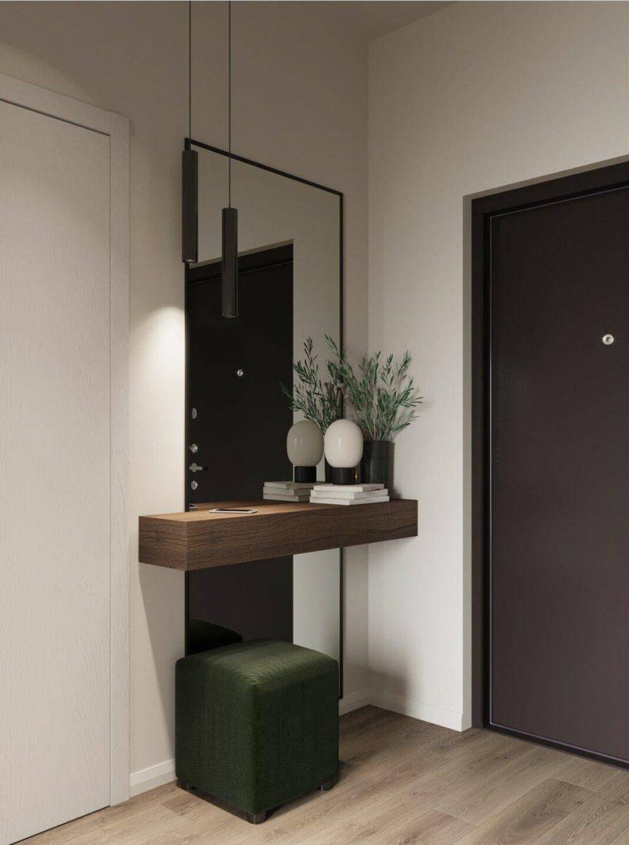 В большой прихожей ставьте комод у стены, противоположной входной двери.
