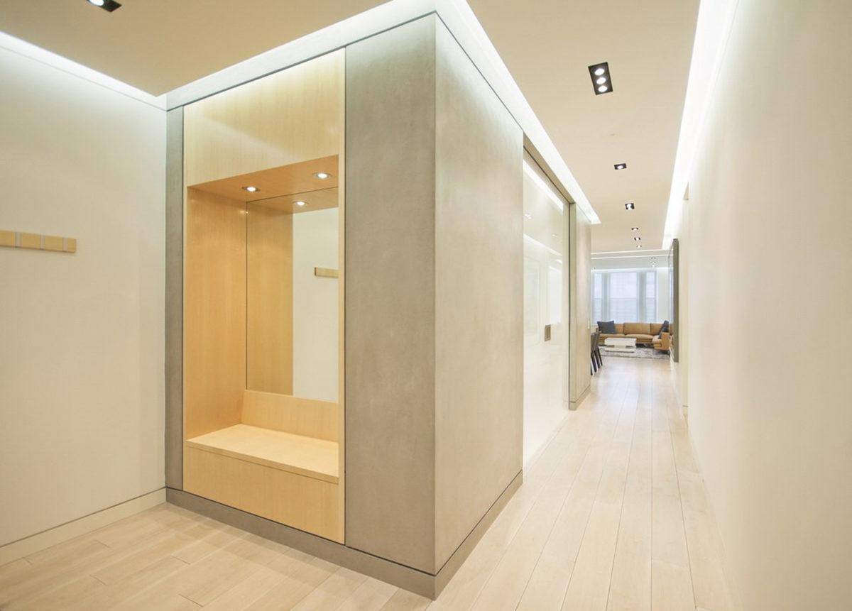 Дизайнерские приемы эксплуатации локальных источников освещения или встроенной подсветки для коридора дали новую жизнь этому участку, это важная часть дома – лицо жилища. Навсегда забыты времена когда приходилось выкраивать каждый сантиметр полезного пространства. Использование не пригодного ранее метража позволяет обустроить все в новой стильной манере.
