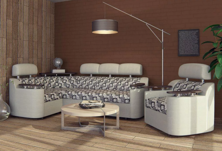 - Позволяет экономить площадь гостиной. Конструкции мебели бывают разной, но вся она эргономичная, что позволяет расставить ее так, как было задумано в дизайн-проекте.