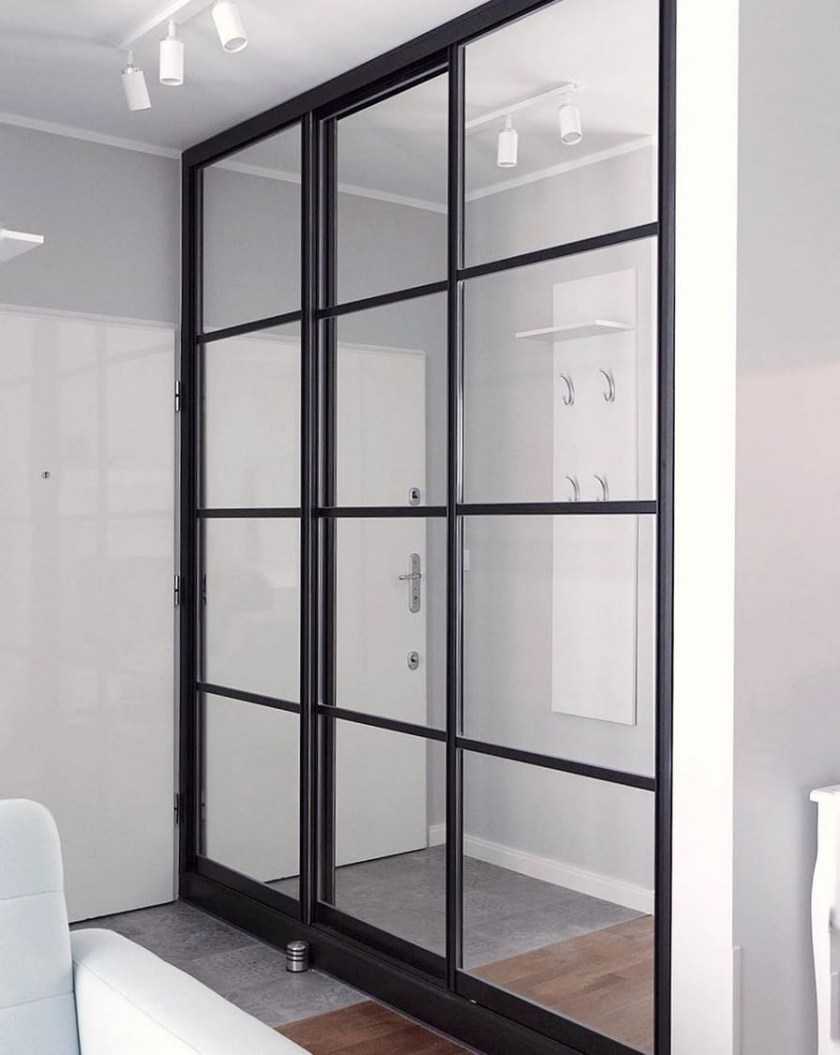 - Во-первых, соответствующие модели преимущественно представляют собой шкаф-купе, который по умолчанию идет с раздвижными дверцами и зеркалом;