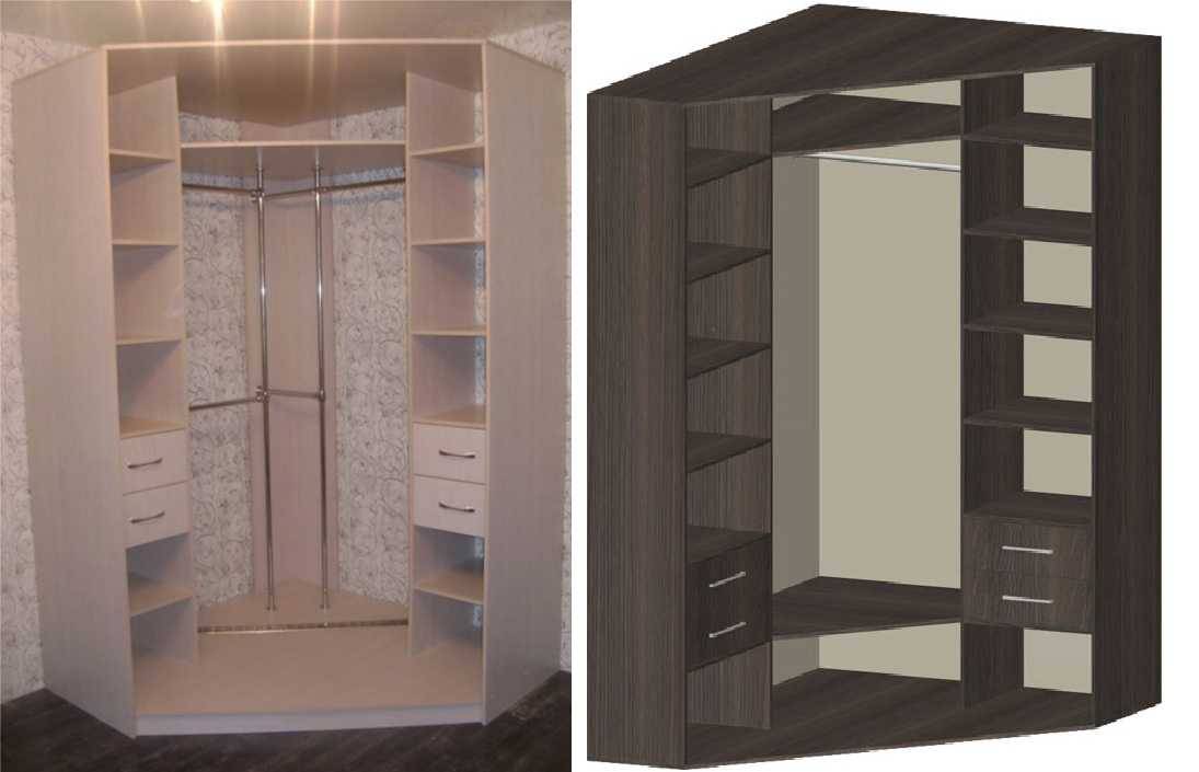Эти разновидности занимают угловую, самую неиспользуемую зону комнаты. Различают прямоугольные, пятиугольные и трапециевидные модели.