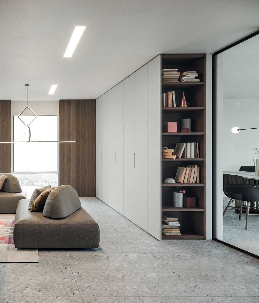 Главное, чтобы конструкция не была отдалена от окон, т.е. простилалась вдоль одной из близлежащих к остеклению стен. А если соответствующего расположения не удается достигнуть, то рядом со шкафом обязательно необходимо организовать местное освещение.