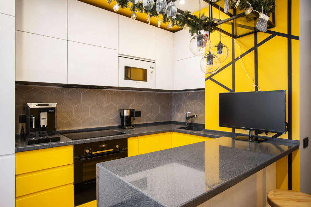 - удобна для готовки, так как вся необходимая мебель и техника находится рядом;
