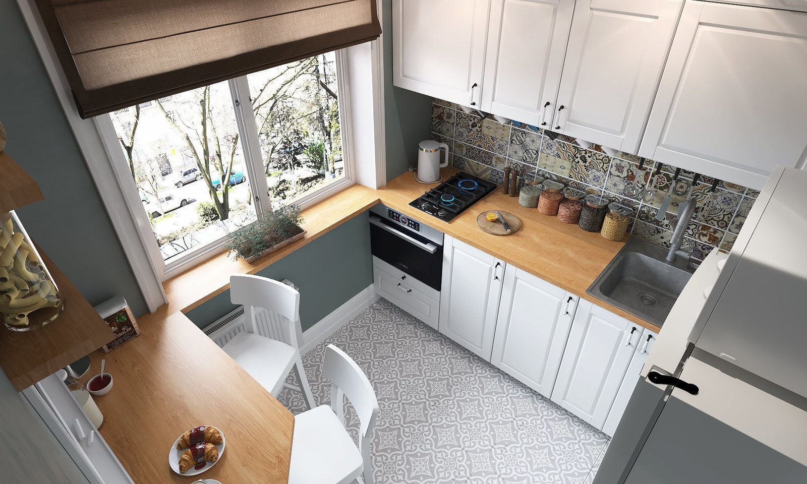 Дизайнеры сходятся во мнении, что угловая кухня с окном хорошо подходит для небольших комнат. Окно — дополнительный источник света, поэтому небольшая кухня выглядит просторнее.