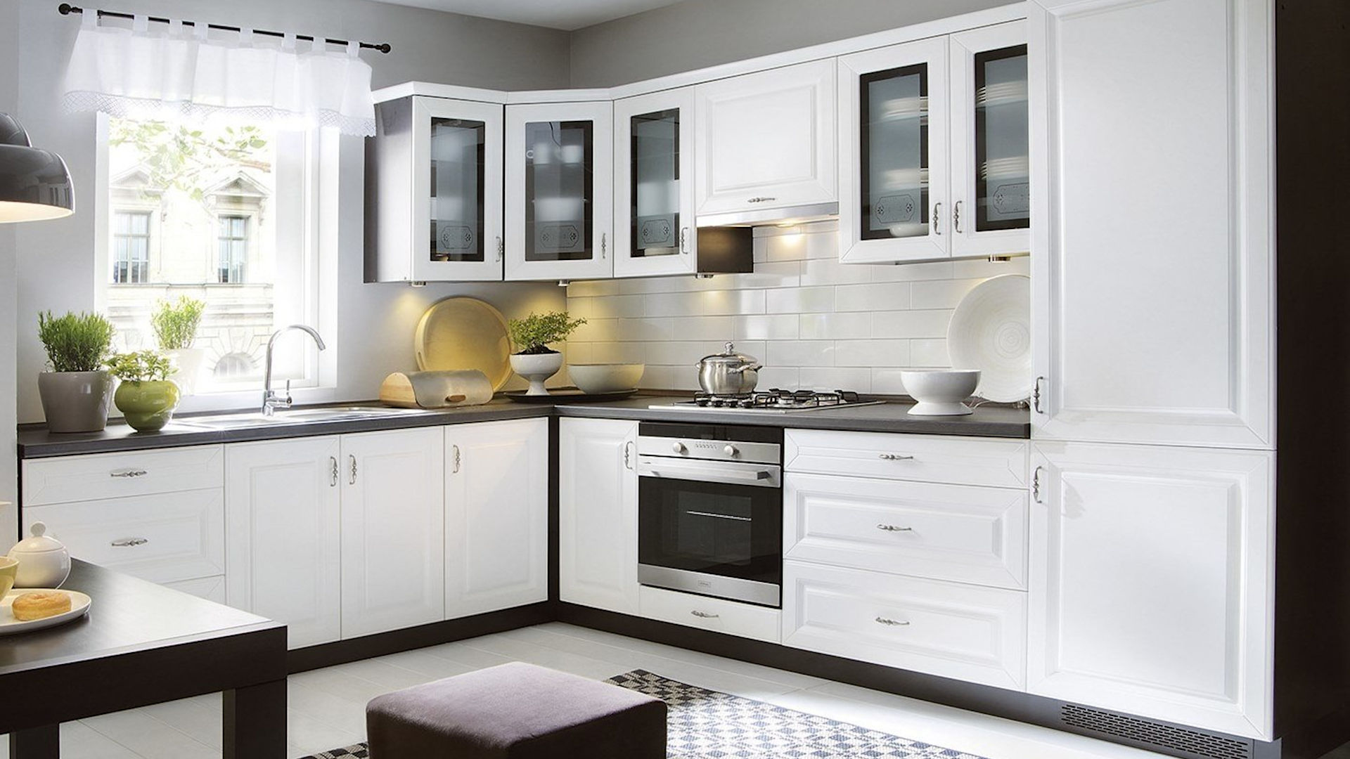 Угловые кухни с окном подойдут: