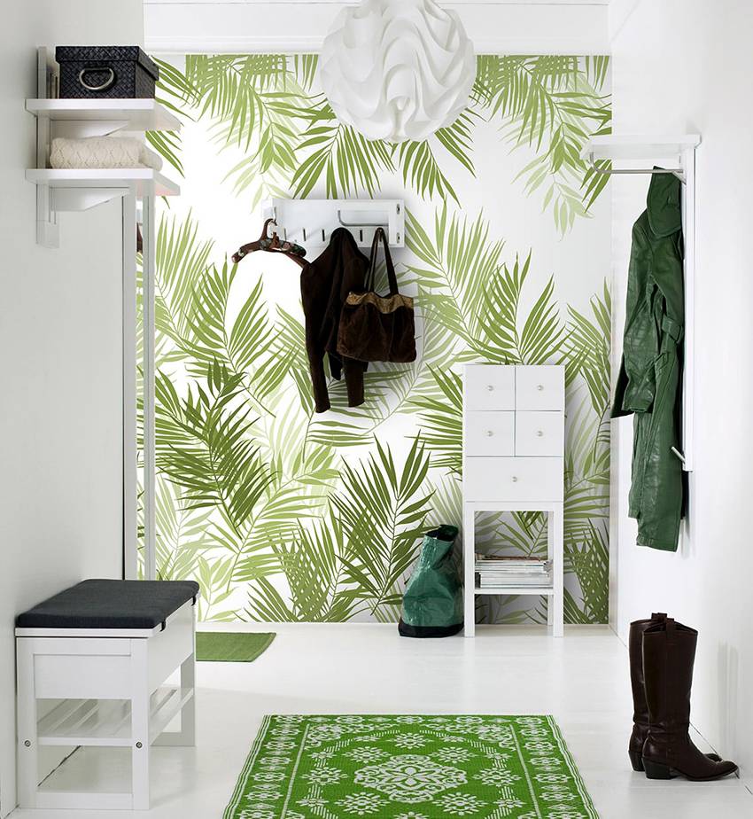 Для отделки стен прихожей в современном стиле можно использовать обои или краску