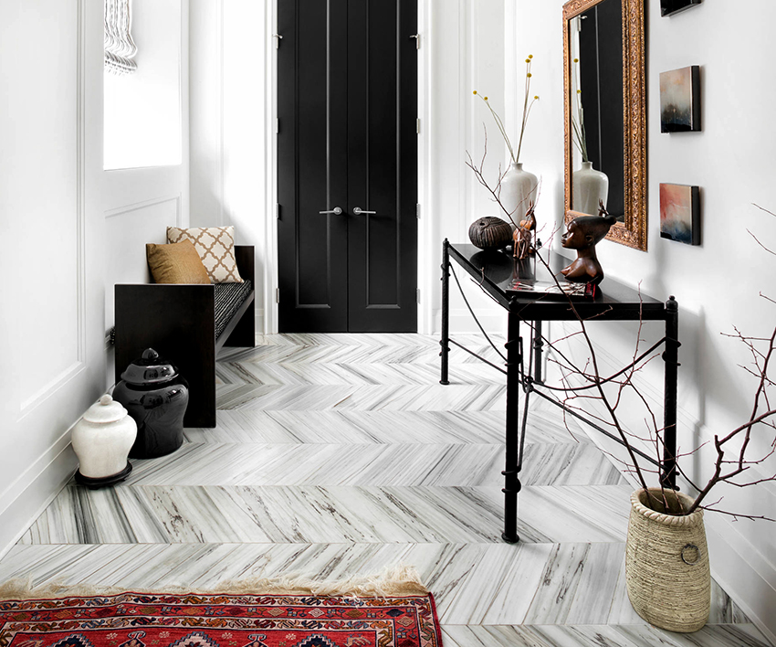 Для облицовки пола прихожей лучше всего подойдут плитка или камень