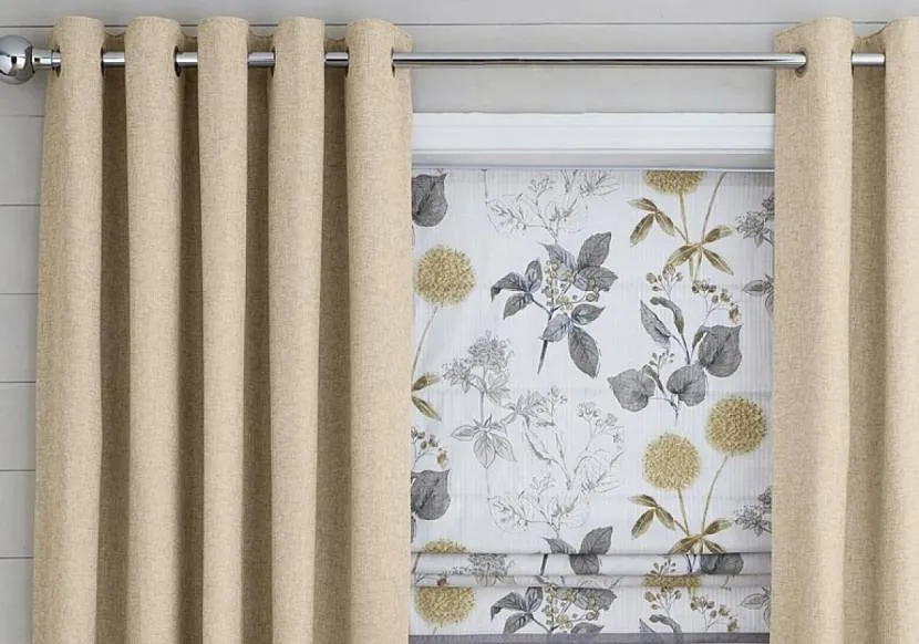 - Для комбинирования штор, при выборе материалов разного цвета, желательно чтобы они совпадали по стилю.