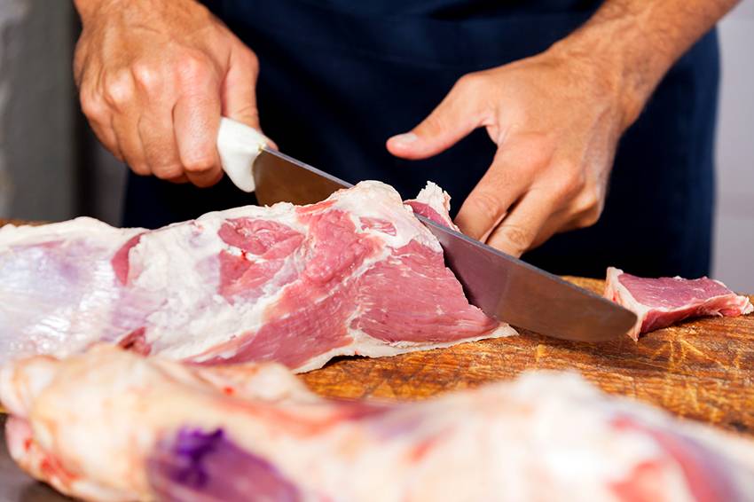 - Неравномерная нагрузка на режущее полотно при неоднородном составе продуктов (попадание лезвия на кости, сухожилия при разделке мяса).
