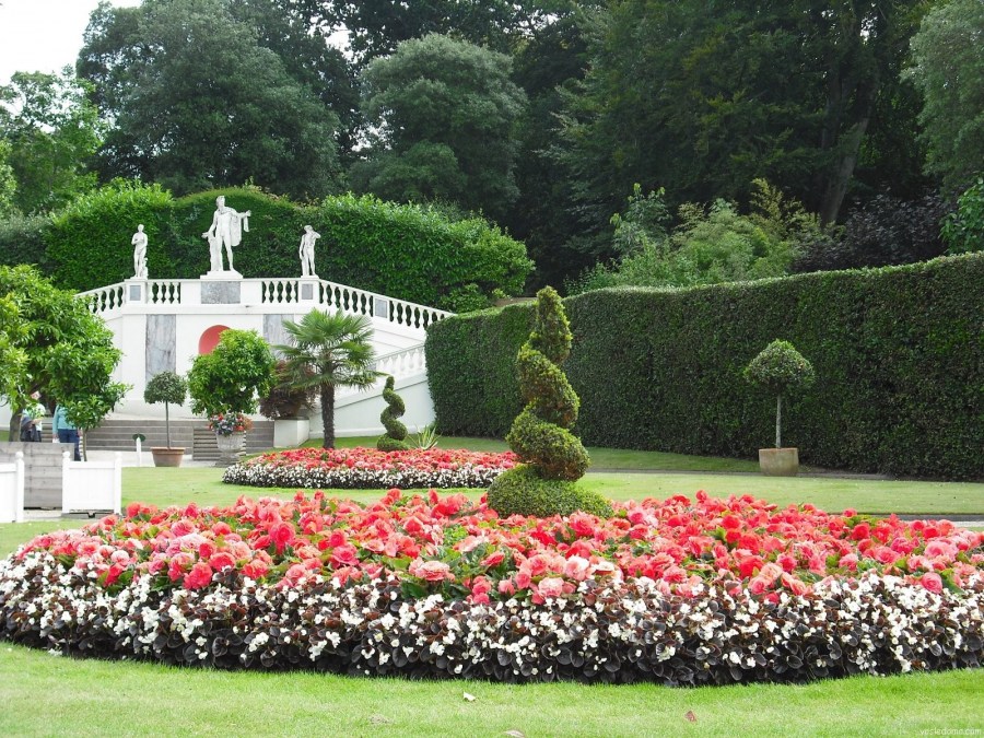Классический сад оформляют строго согласно плану. Это тот вариант, когда все четко, границы, формы, высота кустов и бордюров. Все под линейку и ровно. В строго отведенных местах установлены вычурные скамейки, рядом с которыми устраивают фонтаны, устанавливают декоративные вазоны с цветами, статуи и колонны.