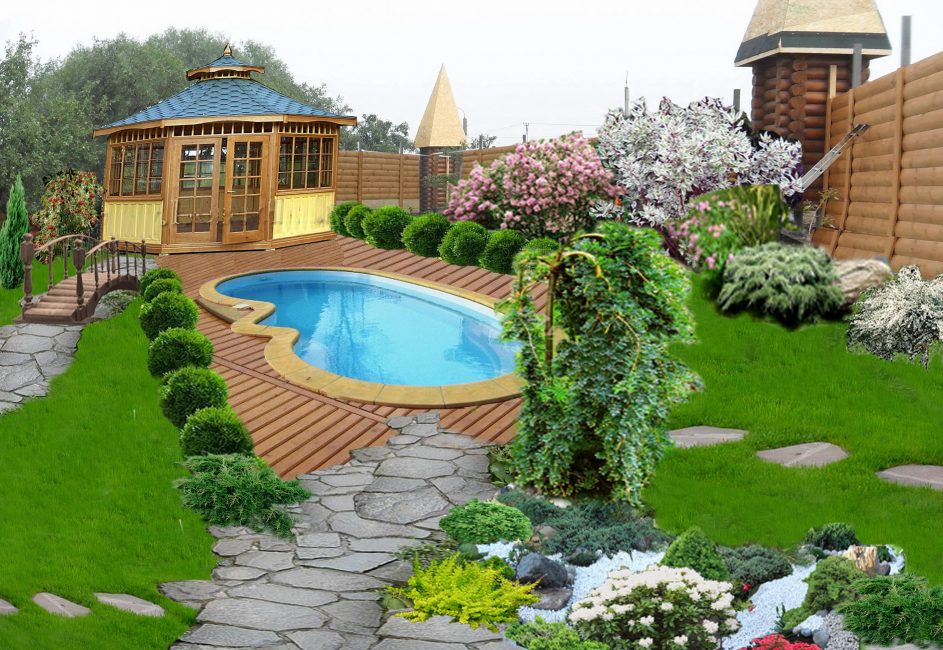 Для качественного благоустройства рекомендуется обратиться к специалистам, которые помогут провести свет в любую точку участка, пробить скважину или соорудить сауну. Но довести «до ума», чтобы все объекты воспринимались целостно – задача хозяев дачи. Если уж совсем нет навыков, можно заказать у ландшафтного дизайнера единый план-схему, где учитываются все пожелания заказчика. Альтернатива – разработать его самостоятельно, используя специальные программы для оформления участка своими руками, образец – на фото.
