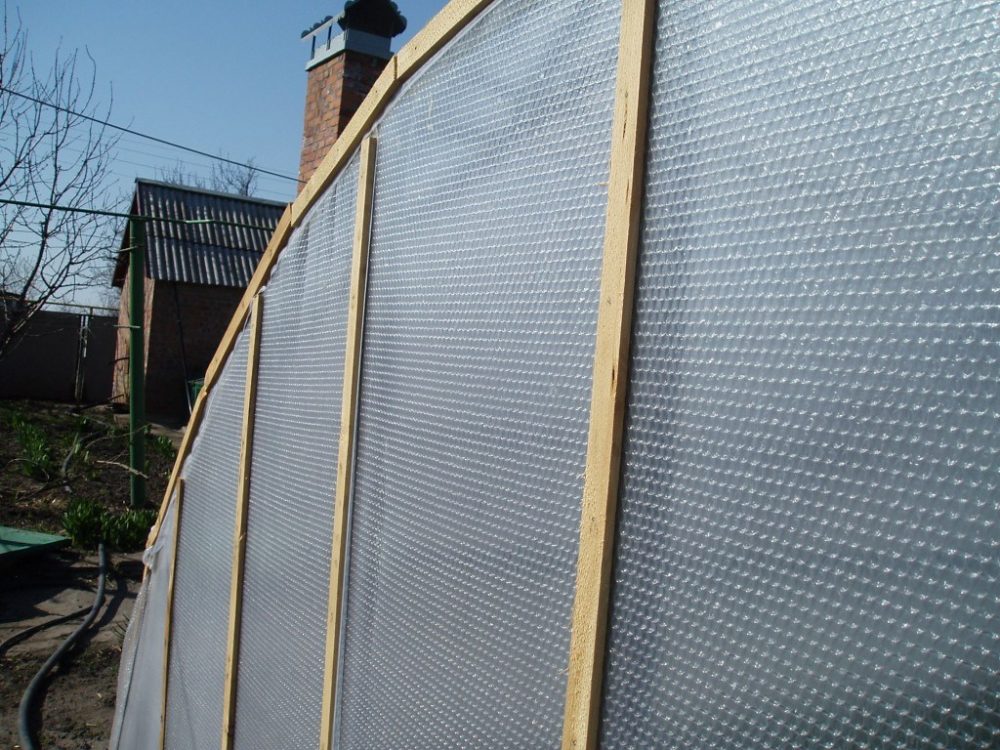 - Пузырчатая пленка. По своим теплоизоляционным свойствам это пленочное покрытие не уступает стеклу и поликарбонату. При этом пузырчатая пленка устойчива на разрыв и хорошо выдерживает перепады температуры. Ее недостатком является низкая светопроницаемость.