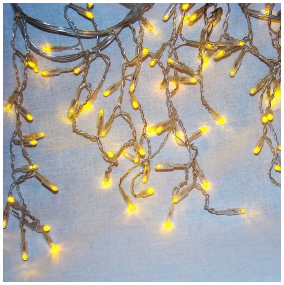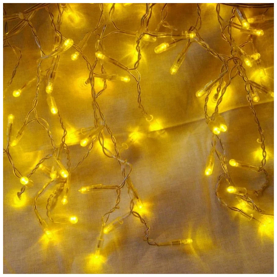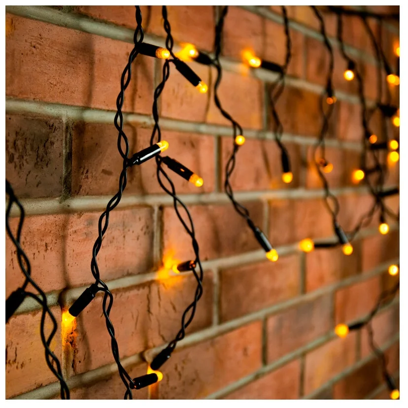 Главное отличие от занавесов – отдельные нити не одинаковой длины. Чаще всего однотонные, однако, бывают и многоцветные. Есть несколько режимов работы, подключаются такие гирлянды к общей электросети.